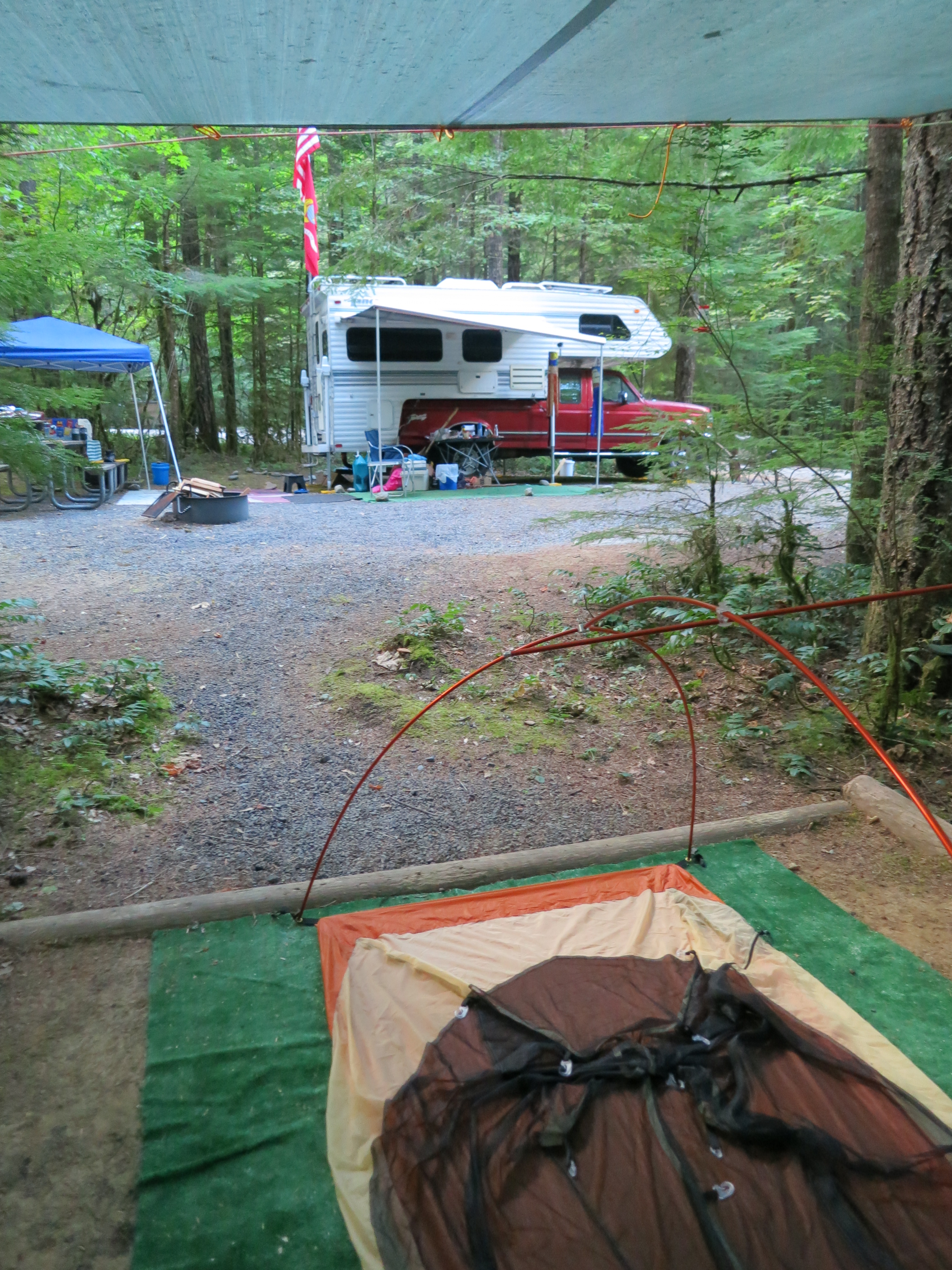 Finally, the campground. I found the entrance, and the Ferrenbergs’ site. Sue & James were astounded to see me so soon, and I got a hero’s welcome! And fresh food!